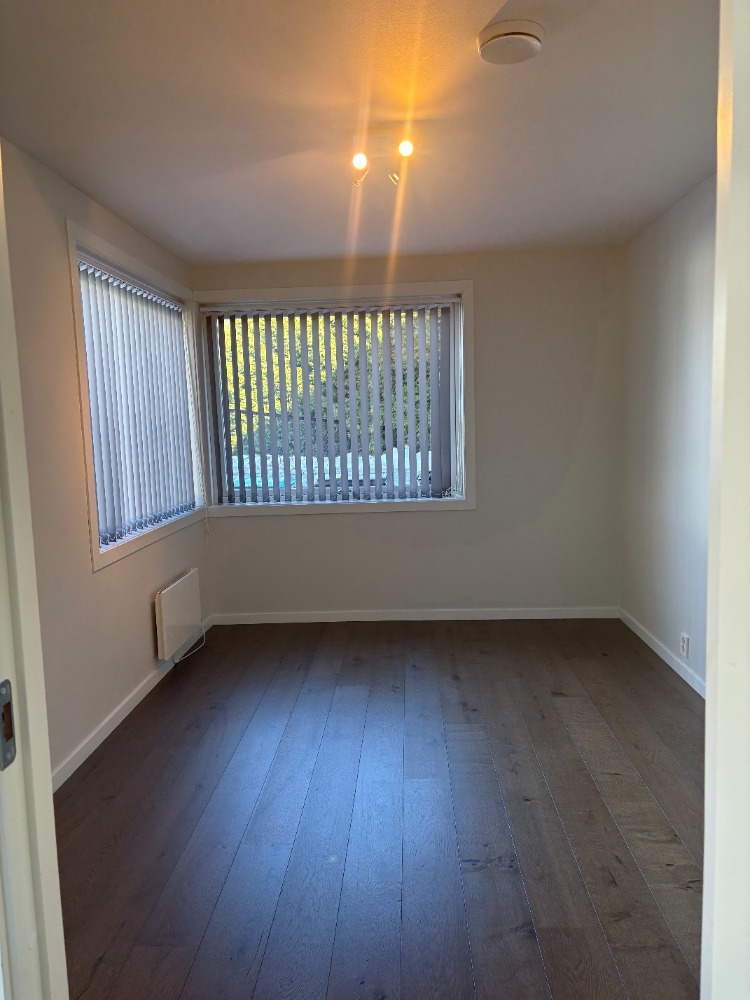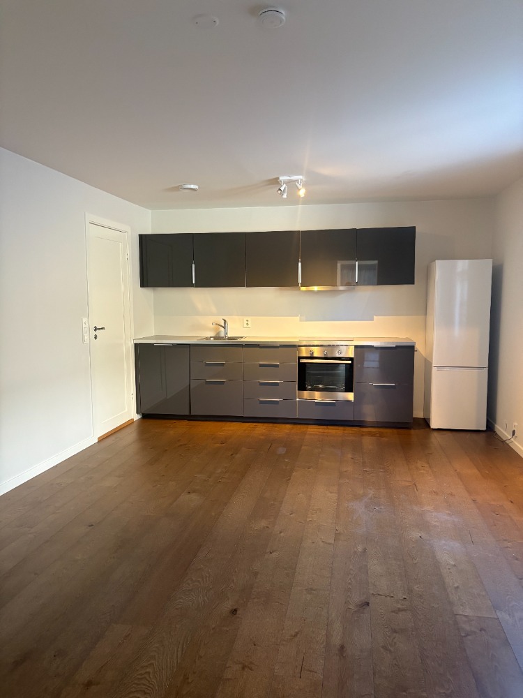 Leies ut umøblert, men inkluderer hvitevarer (kjøleskap, komfyr, oppvaskmaskin) og vaskemaskin.