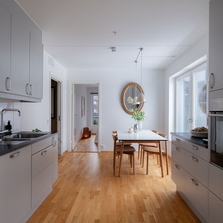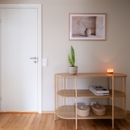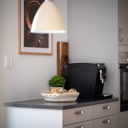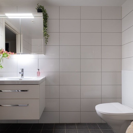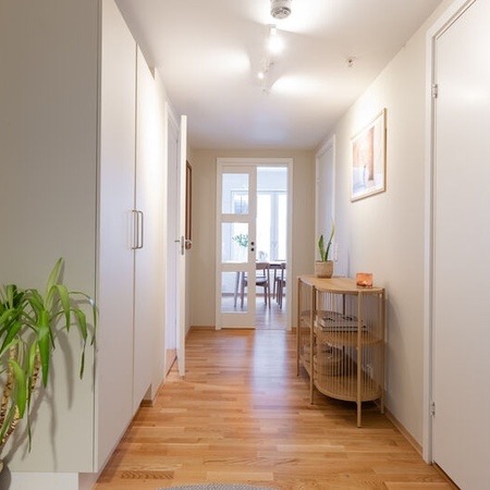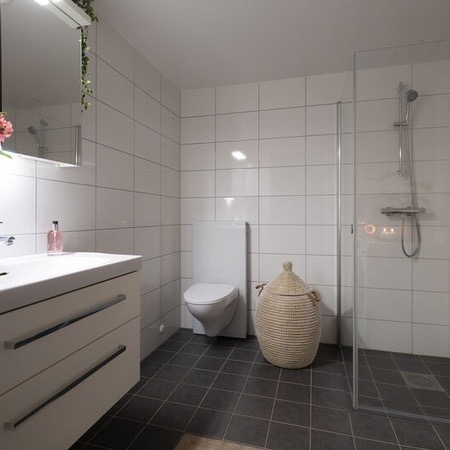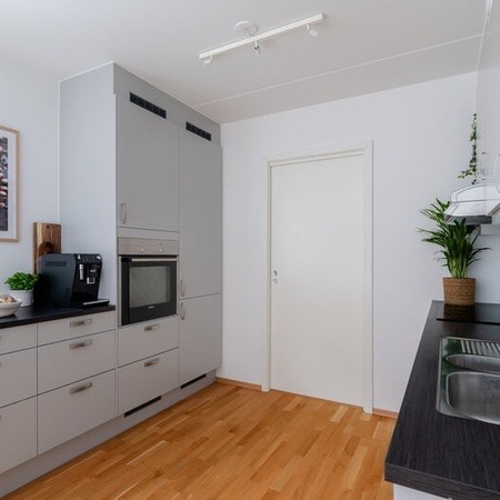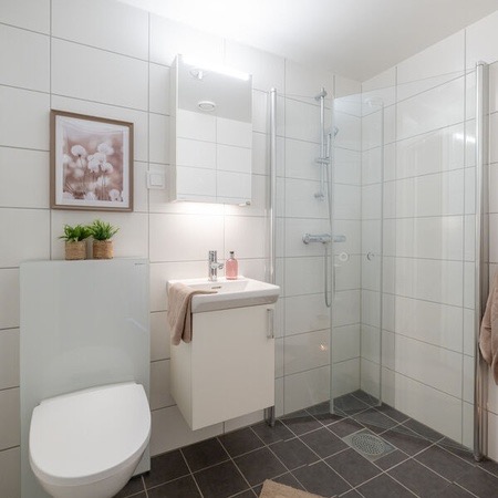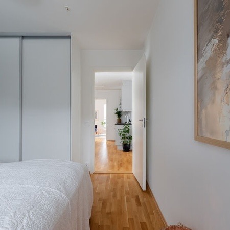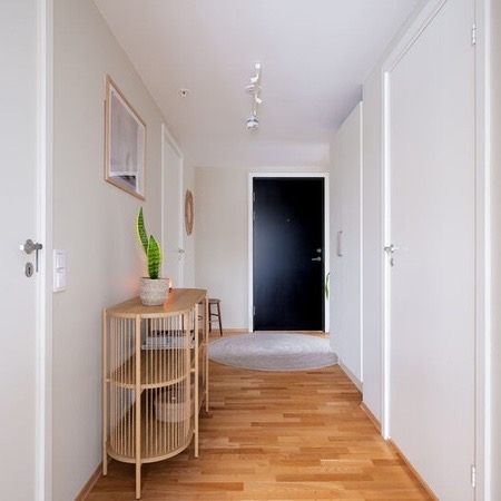 Leiligheten er ganske ny i en ny blokk, så strøm er ganske billig! Det er to bad med dusj på begge. Man kommer inn i en stor yttergang som leder inn til kjøkkenet. Kjøkkenet er adskilt fra stuen med en skyvedør. Stuen er stor og romslig og leder ut til en syd-vendt balkong som får både morgen- og kveldssol. Leiligheten inkluderer også en innebygd bod i tillegg til kjellerbod i felleskjelleren til bygget.