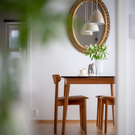 Løren er et nyutbygget området med flere spisesteder og godt utvalg av store matbutikker. Det er kort vei til sentrum med banen som tar noen minutter. Det er både buss- og t-bane-stopp kort gange fra leiligheten.