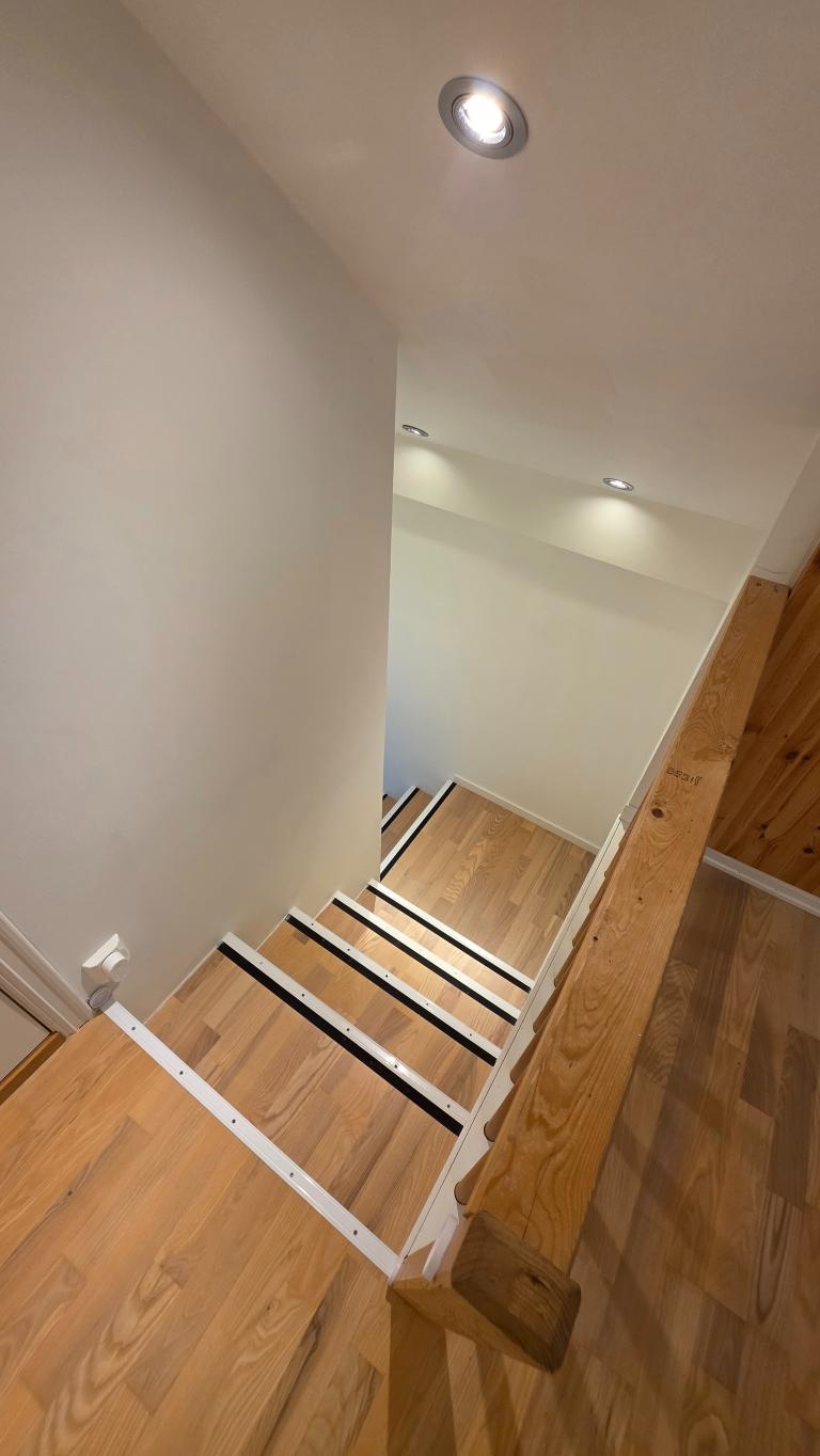 Tekniske detaljer: Innfelte takhøyttalere i stue og kjøkken, samt downlights i hele leiligheten.