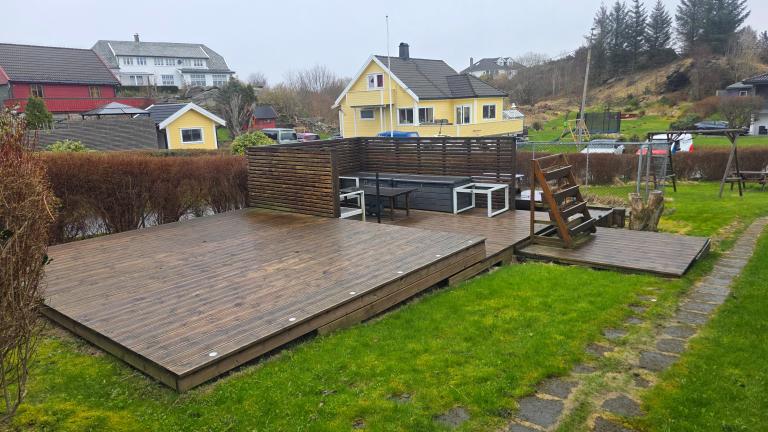 Boligen ligger i et rolig område med kort vei til barnehage, skole og butikk. Som leietaker har du tilgang til en stor, felles terrasse og hage – ypperlig for grilling og uteliv i sommerhalvåret.