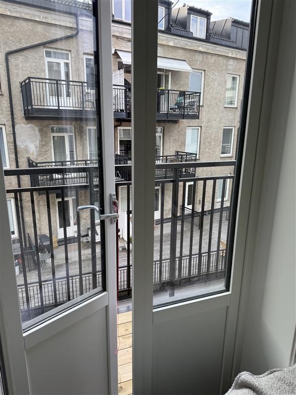 I fjor ble det oppført en liten balkong på ca. 0,9 x 2,5 meter med utgang fra soverommet. Balkongen vendes mot en rolig og grønn bakgård – perfekt for å nyte morgenkaffen i fredelige omgivelser.